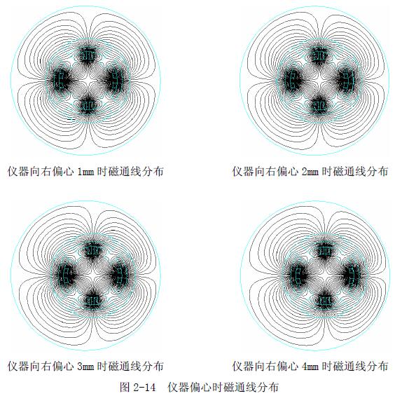 因此,當使用井下四電極電磁流量計進行測量時,應考慮儀器是否位于管道中心。只要儀器是偏心的,管道中激勵磁場的分布就會發生變化,并且當流體切斷磁場線時產生的感應電勢也會發生變化,從而導致測量結果與實際情況有所偏差。